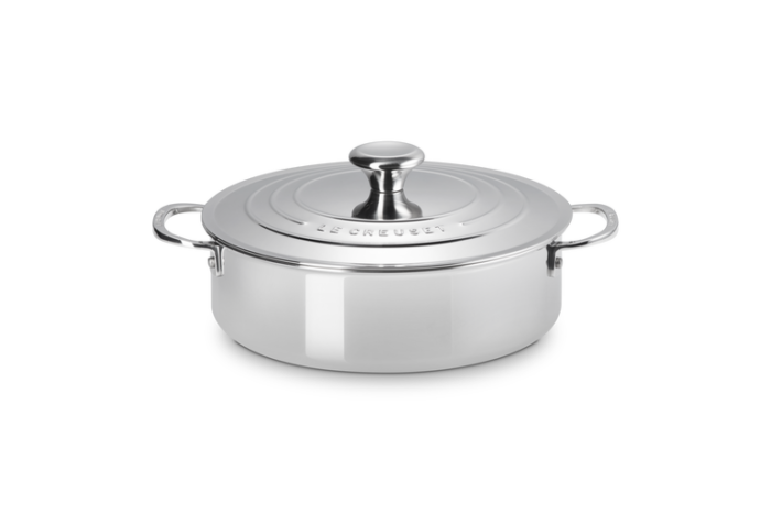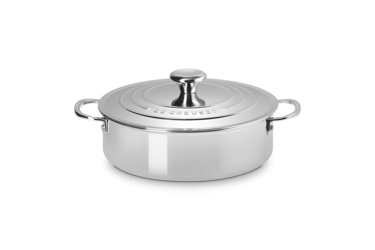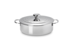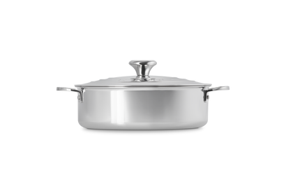 Perfect for hob-to-oven-to-table cooking, this round stainless steel pan has a mirror-polished stainless steel exterior that gleams and glistens. It’s tough, too, thanks to a 3-layer construction. Heat spreads quickly and evenly from base to rim and is retained brilliantly, for delicious results. Useful side handles make moving this beauty a breeze.