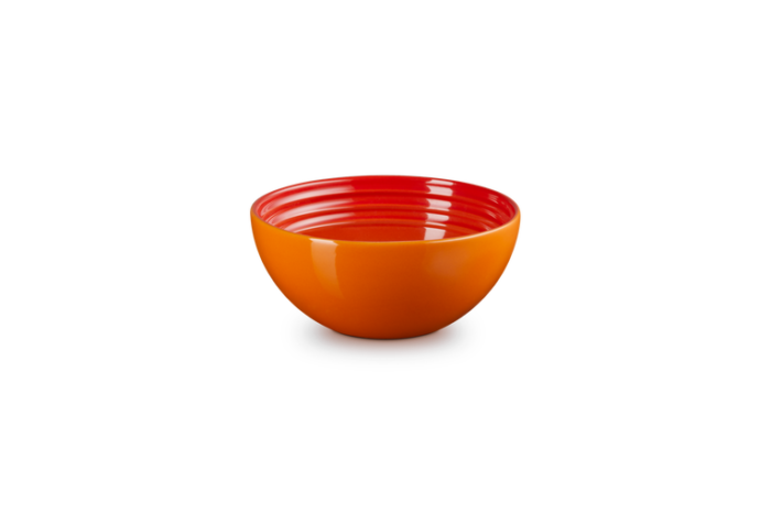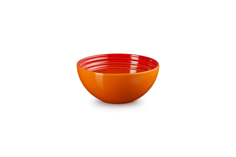 Snacks. Nibbles. Dips. Serve up tasty delights in this very versatile stoneware bowl. It matches other Le Creuset serveware, so you can build your collection. You can even nest it with your other bowls. The iconic three-ring design adds a distinctive design edge to your table.